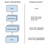 Work on that is currently done in a sandbox, where we’ll flush out the API with a test entity type. Once this works out, the plan is to convert the first entity type and post a patch for further review to the core queue (here). So let me shortly explain the overall architecture of what we currently have or plan for: The idea is that *every* entity has to follow the following data model: